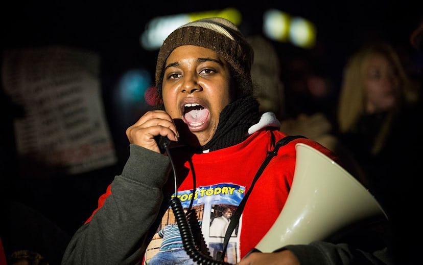 Erica dedicated her life to ending police brutality and seeking justice for her father. Not only was the cop that killed Eric found not guilty, he's currently making more money that he did before the encounter, according to ThinkProgress. Eric had been accused of selling loose cigarettes and was taken into a chokehold. He repeatedly said, "I can't breathe," but the cop didn't release him until he lost consciousness. CPR was not performed at the scene because they assumed he was still breathing, and Eric was pronounced dead at the hospital an hour later.