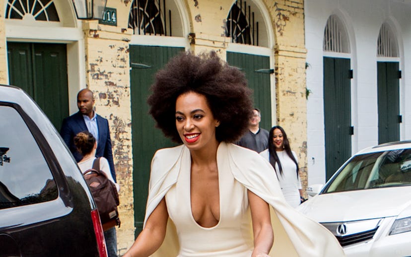 When photos of Solange's wedding hit the internet, we all pretty much lost our shit with excitement. Now that some time has gone by and we can look at the images calmly, with less squealing, there's one thing that jumps out at us: That cape. Actually, there were two capes. Are capes simply the new bridal veils, for badass indie babes getting hitched? Or can this weird-in-the-best-way statement translate to everyday outfits?