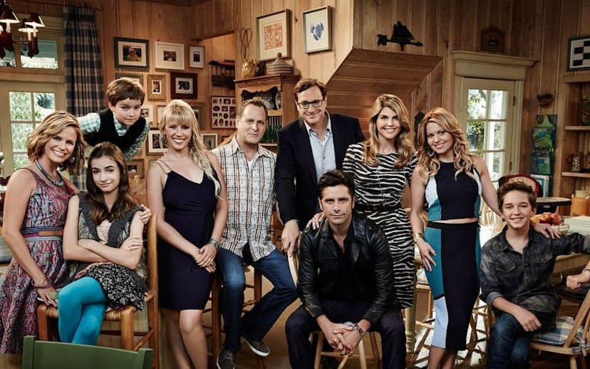 After months of cryptic teases and ghostly trailers, Netflix is going all in on their Fuller House marketing push, having not just released an official cast photo (above), but actual stills of the Tanner fam in action, proving that those empty rooms will indeed be occupied by living humans. The Olsen-less photos feature all the familiar faces, plus some new, stranger faces.