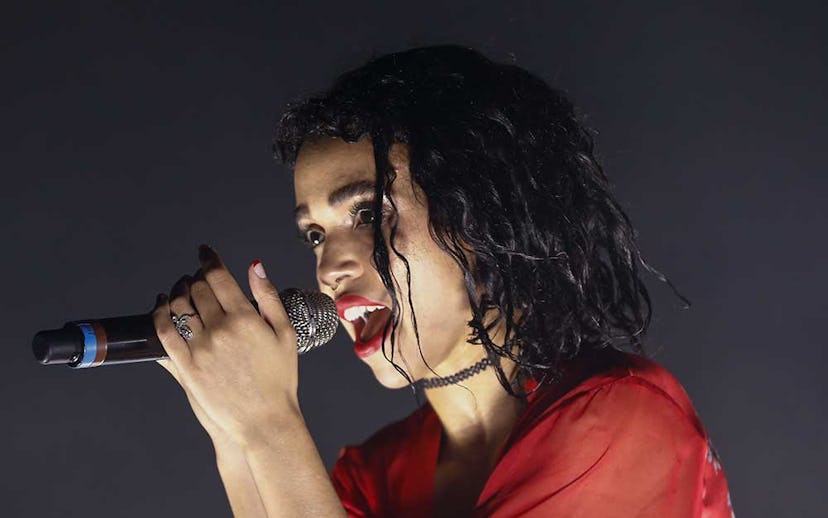 Over the past few months, most of the talk around FKA twigs revolved around her relationship with her fiancé, Robert Pattinson. But, as is bound to happen with any great artist, twigs is about to take control of the conversation and spin the focus back on what really matters: her music. This morning, she premiered her first song since March's "Glass & Patron" on Zane Lowe's show on Beats Radio 1. Partially inspired by eternity and Voguing's figure-eight hand motion, "Figure 8" is an extremely energizing, kinetic track. With ominous bass undertones, static sounds, and a cryptic, curt end, it's undoubtedly one of the most experimental, evolutionary songs of the past few years.