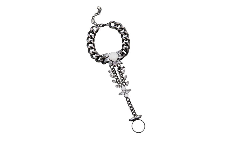 The holiday season is all about bling. From shiny dresses to statement necklaces, the more glittery your outfit is, the better. That's why we're giving away 8 Other Reasons jeweled hand piece. With a gunmetal finish, jeweled pendants, and a glimmering center stone, this bracelet-meets-ring combo is exactly the piece you need on your hand when your reaching for your second--or fifth--glass of eggnog.