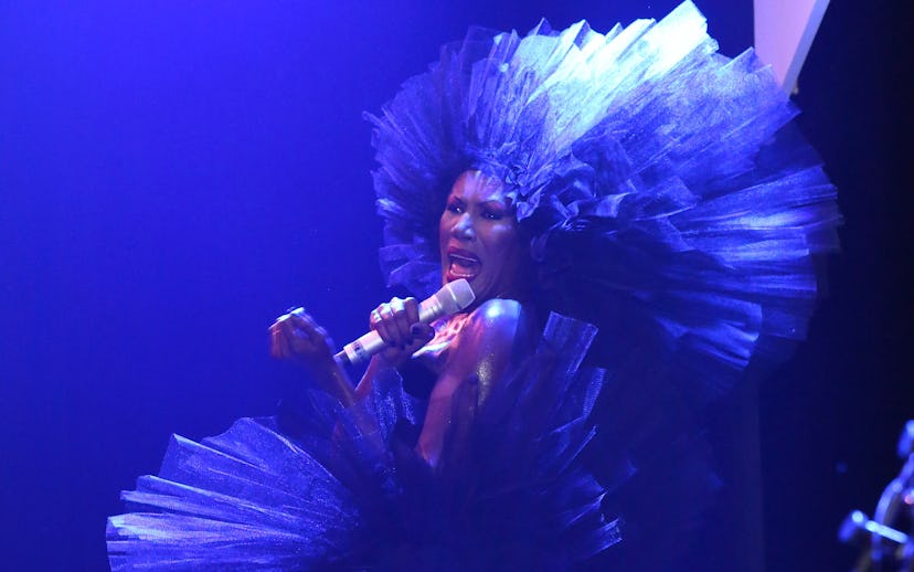 Fans of basically every female pop star best shield their eyes, because the original avant-garde woman behind the mic is dropping cannonballs on the current generation of Billboard-charting women from 50,000 feet up. Time Out London has published an excerpt from Grace Jones’ forthcoming autobiography in which she calls out Miley Cyrus, Nicki Minaj, Beyoncé, Rihanna, and more, calling them unoriginal, lacking in vision, and basically dust mites with recording contracts. Feel the heat.