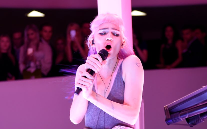 While performing in Dublin last night, musician and NYLON cover star Grimes was apparently electrocuted while pressing down on one of her many effects pedals, under her keyboard rig, during her song “Butterfly.” While it’s hard to see exactly what happened, the poster of the Instagram below claims to have captured the moment toward the end of the video.