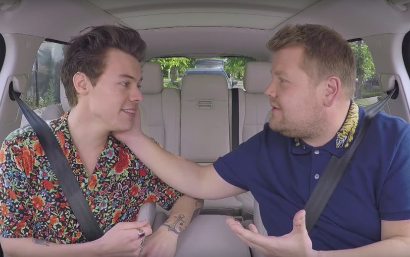 Harry Styles joined James Corden on The Late Late Show for what turned out to be the most romantic "Carpool Karaoke" segment ever. The two belted out Styles' new single "Sign of the Times," which the singer confessed makes him cry on stage—"in like a cool way," he added.