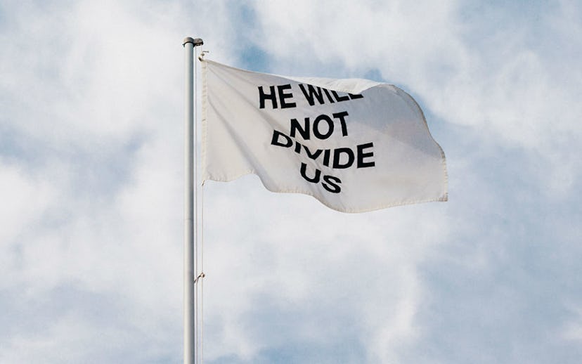 The day after Donald Trump’s inauguration, a political art installation by Shia LaBeouf, Nastja Säde Rönkkö, and Luke Turner was put up on a wall outside the Museum of the Moving Image in Astoria, Queens. It was quickly removed about a month later, after becoming a "threat to public safety"; moved to a wall outside El Rey Theater in Albuquerque, New Mexico, where it was, too, halted due to gunfire in the surrounding area; and then again to an unknown location. Today, LaBeouf, Rönkkö, and Turner put out a statement explaining what, exactly, went down at the original location, and, unsurprisingly because of the climate we are living in today, neo-Nazis are to blame.