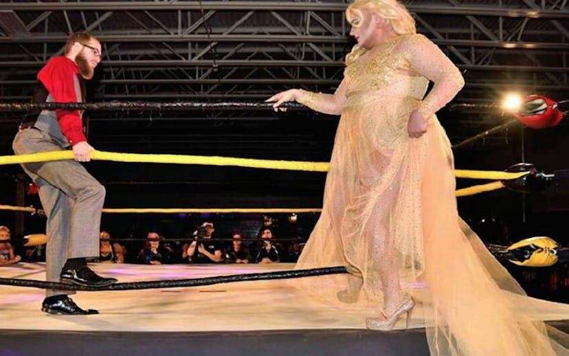 Though it might not be automatically apparent, the worlds of professional wrestling and drag have a lot in common. In both, there is a focus on heels and faces—but those things mean something a little different in sports entertainment. In the often-unspoken backstage lingo of pro-wrestling, heels are the bad guys, faces are the good guys. Despite the intrinsic flamboyance of the art form, pro-wrestling has traditionally cast gay and queer people as bad guys, as heels, largely because, for a very long time, crowds loved watching gay people get hurt. But a new generation of pro-wrestlers is changing the way people see the LGBTQ community and how the sport thinks about traditional gender roles.