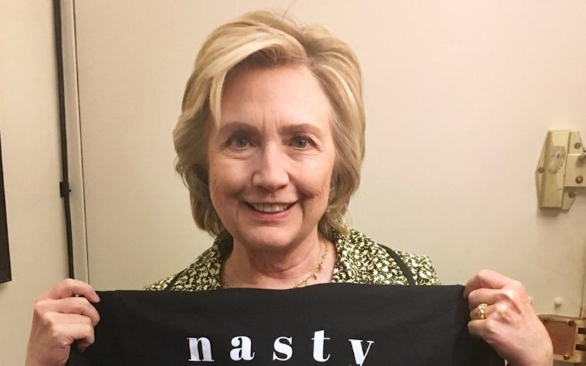 Clinton recently tweeted a photo of herself holding up a black "Nasty Woman" T-shirt, asking her millions of followers to support Samantha Bee's latest fundraiser benefiting Planned Parenthood. You can buy the T-shirts for $25 at the TBS shop. All proceeds go to the women's health organization.