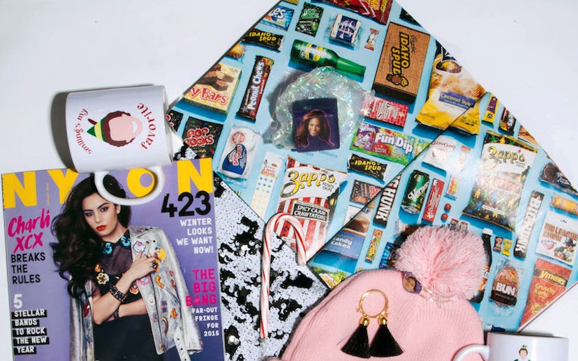 #nylonshop: charli xcx jan 2015 issue—$3.99. perks of aurora: holiday helper mug—$16, smiling's my favorite mug—$16, the pink nightmare mug—$16. stay cute: everyday pom beanie—$24. (available here.)