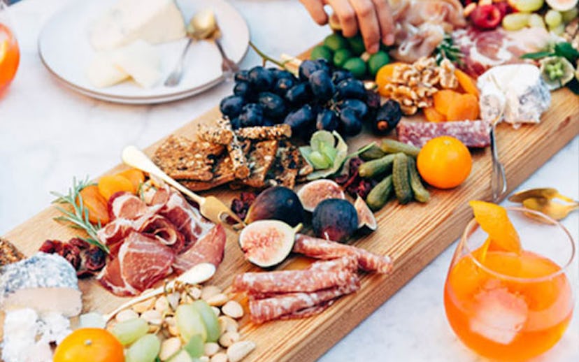 The trick to elevating your dime-worthy dinner party is ambiance: As long as you're setting the perfect party vibe, everything else, from the menu to the cocktails to the conversation, will fall into place. You don't have to go overboard, but putting a little effort into your food presentation and your tablescape will go a long way. Don't forget string lights! Everyone loves them and they instantly give you that soft mood lighting, where everyone looks fabulous, no Instagram filters needed. Ditch the paper plates, plastic cups and pizza boxes in favor of vintage mix and match plates and platters from your local flea market. Usually you can find these on the cheap, and the hunt can be just as fun as throwing the party. Or, treat yourself to an affordable set of dishes that bring their own personality to the table and will hopefully motivate you to throw dinner parties on the regular. For drinks, it’s easy to find budget-friendly glassware, so serve those pretty-in-pink Greyhounds in whiskey glasses, and have glass bottles for water and other beverages set along the table–it all feels very fancy, for just a few dollars.
