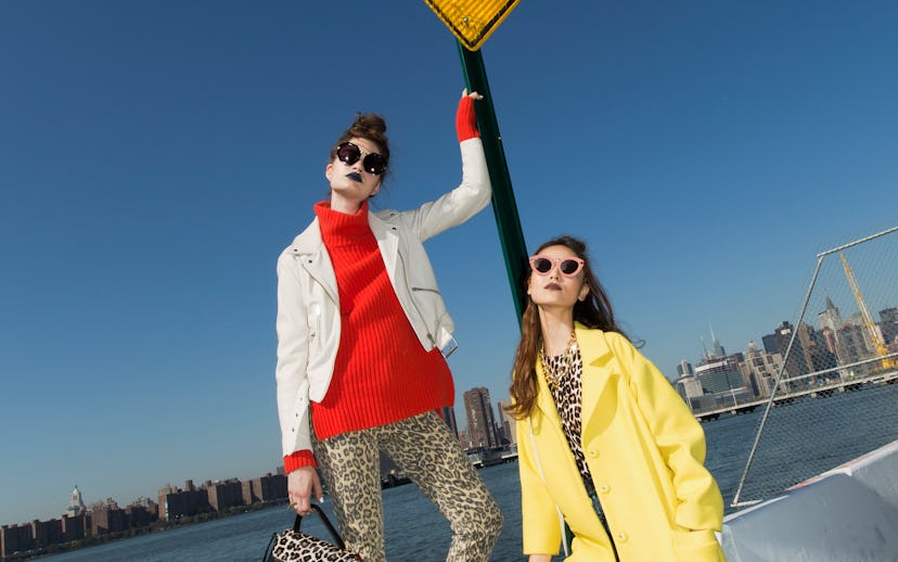 On Mika:Novis, The Cobble Coat, $1,795, similar styles available at Novis; Equipment, Shirley Sweater, $288, available at Equipment; Rachel Comey, Slim Legion Pant, $345, available at Rachel Comey; B Brian Atwood, Karina Leopard-Print Calf Hair Pumps, $180, available at Lord & Taylor; Karen Walker, Lunar Flowerpatch Rose Pink Sunglasses, $300, available at Karen Walker; R.J. Graziano, Status Link Necklace, $125, available at R.J. Graziano.