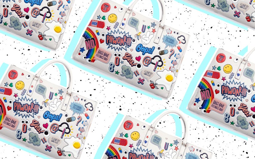 Anya Hindmarch, ebury maxi stickered-up leather tote, $3,500, available at Net-A-Porter.