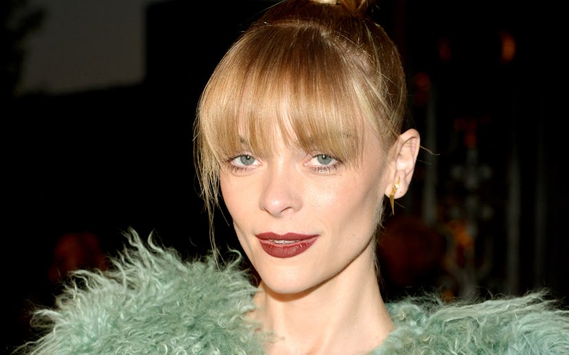 The actress, who may be best known for her role in Sin City, wore a sheer green Burberry dress and fuzzy jacket to Burberry's "London In Los Angeles" event last night. She also connected the dress' black piping into her footwear with a black ankle boot. What we love about this look is how dramatic it is—not just because of how it highlights her belly (which, let's remember, is holding another being inside of it, a crazy thought in and of itself), but because it is showy alien monochromatic fashion that is actually wearable. Hiding pregnancy behind floaty baby-doll dresses is totally fine, but so is flaunting it, front-and-center.