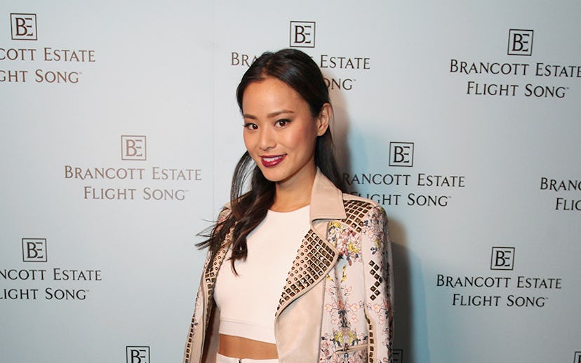 Take Jamie Chung for example. She takes an otherwise simple ensemble of a crop top, midi skirt, and suede heels to the next level with this kick-ass BCBG leather moto jacket. The floral detailing and rust colored studs make this jacket one of a kind. One word: everything.
