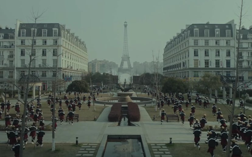 Anyone who remembers Gavras' work with artists like M.I.A. and Kanye West shouldn't be too surprised by the video's scope. But what might be surprising is that it was shot without CGI or 3-D effects, according to a press release. That might leave you wondering how they got the Eiffel Tower into this dreary city. The answer is Tianducheng, an abandoned development in China that was intended to be a replica of Paris but that remains largely abandoned today. You can watch the video below, preferably on a "full screen with loudspeakers or headphones," according to Gavras.
