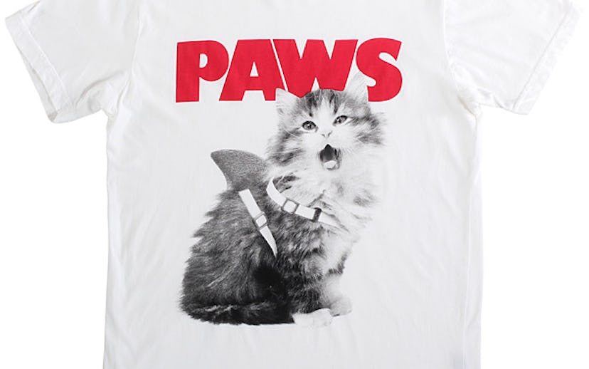 To say that this Alex and Chloe Paws tee is outrageously amazing would be an understatement. I mean, look what we have here: two kinds of a puns on the famous 1975 Jaws poster and a cat wearing fins who thinks he's a shark--yeah, I can't really think of anything more purrfect. And if you're planning on snatching up five million of these like I am--which you can do here--I only have one small piece of advice: You're gonna need a bigger boat.