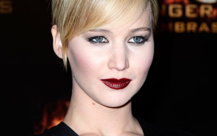 Happy Hunger Games week! The Hunger Games: Catching Fire finally opens in theaters this Friday, just in case you've been living under a rock and/or haven't noticed that star Jennifer Lawrence is everywhere. Which is a good thing. The actress and Dior face upped the drama at the film's Paris premiere over the weekend with a dark burgundy lip, kohl-rimmed eyes, and porcelain complexion. Not only did the look go perfectly with her black Dior gown (that's a given), but it also gave us makeup inspiration for next weekend. See? Monday morning blues just got a little bit better.