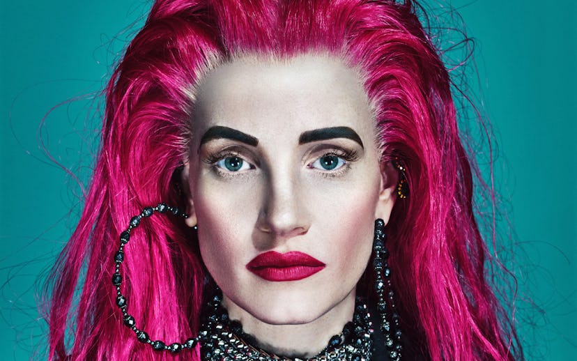 Like, we had to check the credit on this one. Then we rubbed our eyes and checked again. Yup, it’s the normally classic-looking Jessica Chastain gussied up like a mid-'80s glam punk staring back at us from the cover of the new W magazine. It’s really amazing what a few era-appropriate accessories, a good hair-and-makeup team, and photographer Steven Klein can do.