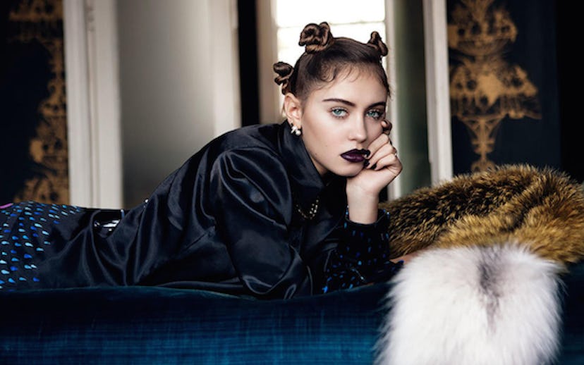 Now, who’s that looking like a goth Internet girl who listens to Miley in the new lookbook for Illustrated People x Violetta Fancies? Who’s this new standout face with the drowsy-yet-confrontational eyes and dark lipstick? Turns out it’s a celeb daughter who, silly us, was not on our radar.