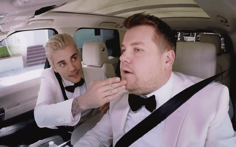 All Justin Bieber does is win. It seems like eons ago that the 21-year-old pop star was on the verge of throwing away a once promising career, after a string of very public missteps turned him into a global laughing stock. But thanks to a very savvy PR campaign, coupled with a killer, best-selling album, Bieber is once again on top of the world. One of the many people who helped in the Bieber rehabilitation project is James Corden, who kicked off the sensation that has become Carpool Karaoke with an episode that featured the beleaguered pop star. So it's only fitting that Bieber and Corden teamed up for another installment of the popular series, on the night that the Beebs won his first ever Grammy.
