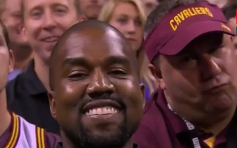 It happend last month during the Conference Finals, and it happened last night in Cleveland during the NBA Finals. In both cases, Kanye was having a good time, which causes humans to flex the muscles at the side of their mouth—an action colloquially known as a smile. When he notices the camera on him, he relaxes those muscles and the smile disappears. The effect is hilarious, adorable, and most of all, mesmerizing. We can't stop watching it. (Vulture)