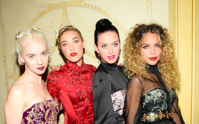 Cool girl sandwich! Caitlin Moe, Mia Moretti, Katy Perry and Cleo Wave serve up plenty of outfit and beauty inspiration at the screening of MADEMOISELLE C in Paris.