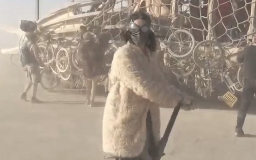 Katy Perry made Burning Man history this weekend by becoming the first pop star to spin 360 degress on a Segway, kind of wipe out, and then chase it down in the middle of a sandstorm. Perry uploaded the video to her 27 million Instagram followers, and it immediately went viral and launched a thousand Mad Max comparions. And while the Segway prat fall is pretty endearing, our favorite part of this video has to be Perry's gnarly goggles, which look like loaners from Marvel's wardrobe department. "Obvious first time burner alert," Perry wrote in her caption, for which we have no witty retort. Watch the video below.