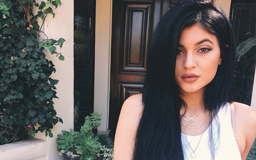 Kylie Jenner is one member of the Kardashian clan who definitely isn't afraid to change up her style. After switching hair colors and lengths and experimenting with hair extensions—so much that she landed her own line with Bellami Hair called Kylie Hair Kouture—the youngest Jenner has debuted yet another new 'do. Yes, another. In the Halloween spirit, she stepped out last night with newly grayed ombré hair extensions that perfectly match the 17-year-old's grunge style.