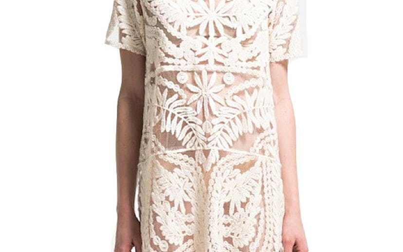 This is why I'm so in love with this sheer dress from Fabourg du Temple. It's short and roomy enough to stay cool, the lace detailing gives it an extra dose of chic...and while we can totally picture it paired with sandals, we actually think it'd look cuter with beat-up Converse. Particularly running through a festival grounds in order to catch Lorde, Haim, Jack White, or all of the above.