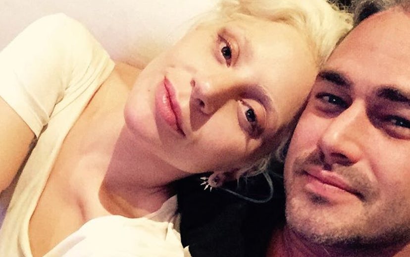 Over the past week or so, Lady Gaga has teased out bits and pieces from her latest project, the spring preview issue of V, which she guest edited. While a major part of the issue's focus is on fashion—designers like Karl Lagerfeld, Hedi Slimane, and Alexander McQueen and figures like Daphne Guinness and Isabella Blow who have influenced her personal style—given Gaga's need to explore life and creativity in every medium, it only makes sense that some focus be given to the singer's personal life, and how she embraces creativity in the every day. And so her and her fiancé Taylor Kinney worked on an intimate spread that "explores the creative capacity of love as a healing force."