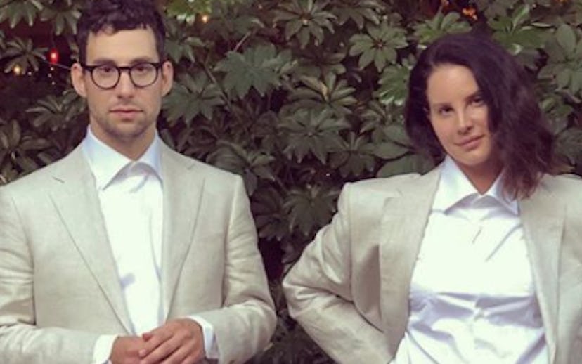 Last night, Del Rey uploaded two different snaps of herself with none other than songwriter-to-the-stars Jack Antonoff. Decked out in matching cream suits, her Instagram upload shows the pair posing in front of some greenery alongside the caption, "Just because." Given her power stance and the fact that she can rock a suit like no other, it wasn't long before fans began commenting "big dick energy" all over the post. Del Rey, it seems, was quite pleased with the description—replying to one user with "abigdaddy." A flex if we've ever seen one.
