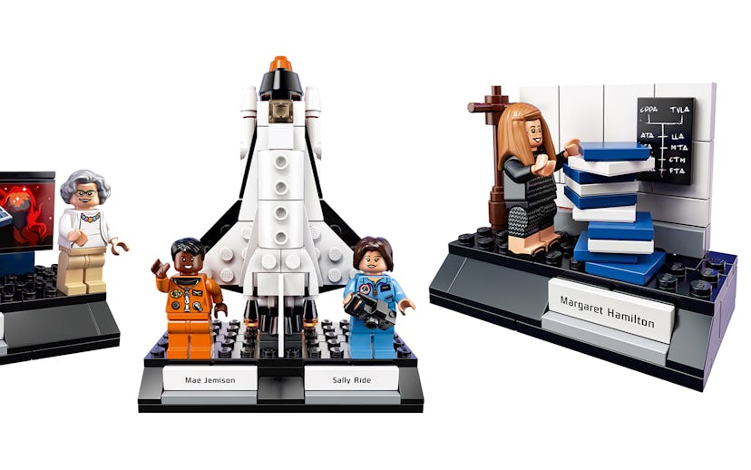 Sally Ride, the first American female astronaut, gets LEGO-ized alongside astronomer Nancy Grace Roman and Mae Jemison, the first black woman to travel in space. Margaret Hamilton, the computer scientist who developed the flight software that powered the Apollo moon missions, also gets her due in addition to a LEGO-sized diorama of her workspace. Unfortunately, due to approval times, Katherine Johnson, the woman who calculated the trajectories of the Mercury and Apollo missions, is not included. (Her likeness was portrayed in last year's Academy Award-nominated film Hidden Figures.)