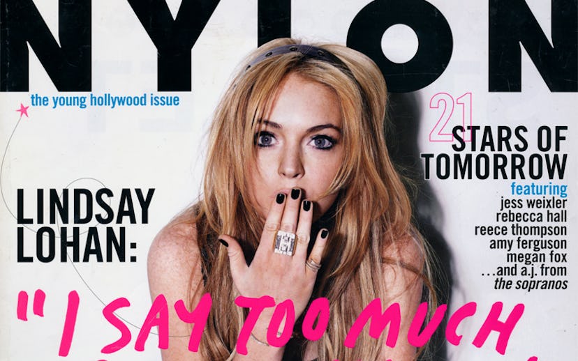 After that, Lohan's early career was steered by Disney, and roles in Parent Trap (which she calls "a turning point"), Freaky Friday, and Confessions of a Teenage Drama Queen established her as something of a deity amongst the Nickelodeon crowd ("I still have four-year-olds come up to me, it's so bizarre"). Then, she went through puberty and in quick succession came the brilliant, Tina Fey-helmed Mean Girls, a couple of appearances hosting Saturday Night Live ("I want to do that again") and a role in Robert Altman's A Prairie Home Companion. Suddenly, Lohan had become an international superstar. The gossip rags became obsessed with her lifestyle—the weightloss, the boyfriends, the living, and partying, in the Chateau Marmont (for almost two years), the shopping, and the clothes. And, what's more, the most famous teenager in the world actually seemed to enjoy it. Court it, even.