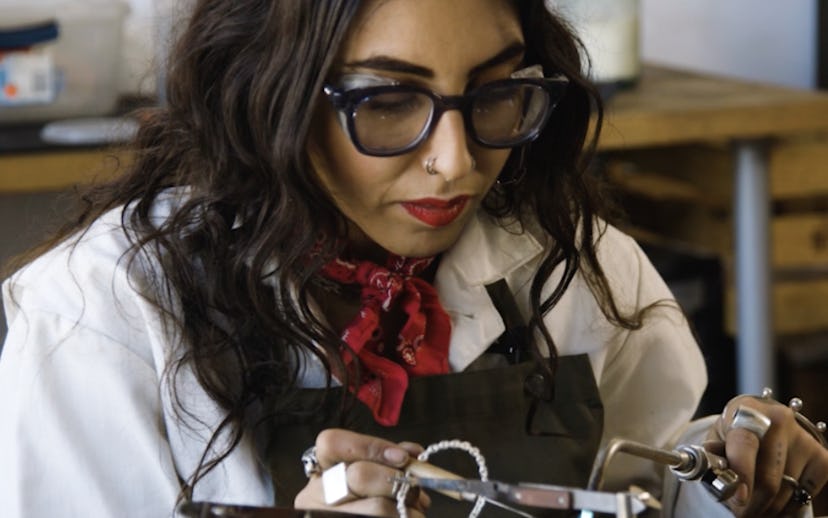 Brooklyn-based jewelry designer Lizz Jardim is known for her incredible ability to commission and create one-of-a-kind, industrial-inspired jewelry by hand. It's a process that many would assume requires hours, maybe even days, of intricate planning and thinking. Turns out, Jardim actually tries to avoid thinking about what she wants to do while creating new pieces.