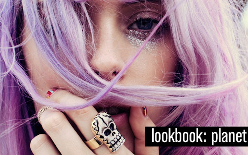 We have seen blazers re-spun in radioactive shades of pink and yellow. We have seen more stackable bracelets than the assembly line at Claire's. We have seen craft store glitter used in place of soap. And oh yes, we have seen tangled hair the color of a Fun Dip spill in Aisle Twelve. So really, this lookbook by Planet Blue, the one-stop shop for California's bright (as in day-glo) young things, isn't anything new. But much like every sequel to Bring It On (and every episode of Make It Or Break It) it's predictable but sooooo good. Click through to see our favorite images, then jump around on your bed like a seven-year-old. Seriously, it's okay - we're doing the same thing.