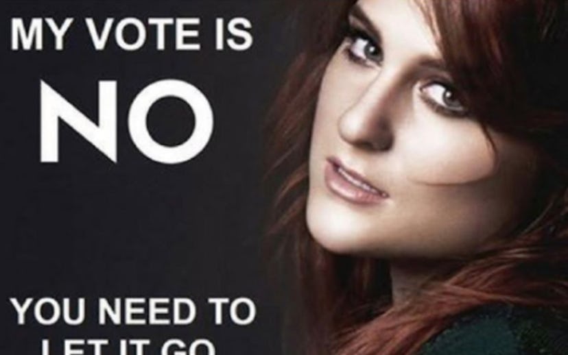 The images were a play on the lyrics of Trainor's song "No." "My vote is no," the ads read. "You need to let it go."