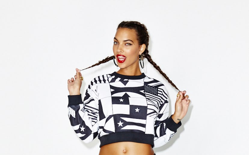 Melody Ehsani x Reebok, Flag Cropped Sweatshirt, $70, available here. Melody Ehsani x Reebok, Graphic Sweatpants, $75, available here. Melody Ehsani x Reebok, Blacktop Pump, $200, available here.