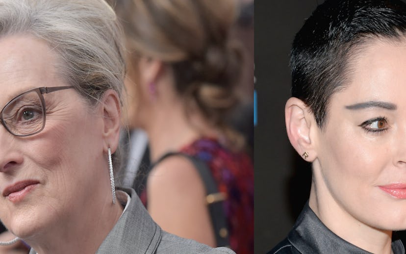 Actress, director, activist, and artist Rose McGowan has been one of the most vocal critics of Harvey Weinstein in the fallout of the massive New York Times exposé on his decades-long pattern of sexual abuse. On Saturday, McGowan issued a tweet calling out actresses, including Meryl Streep—who are wearing black to the Golden Globes in protest of the sexual assault happening in the industry—for being silent or slow to criticize the disgraced producer for his predatory behavior.