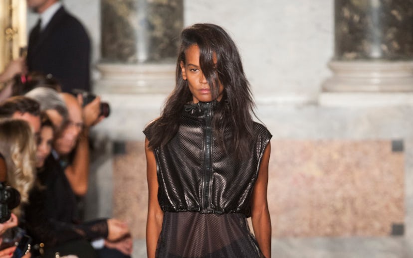 Why I Love It: When you think sexy, you think Gucci--and this look is a perfect example. The big idea here is sexy/sporty. I saw tons of mesh all over the runways (a huge trend for spring) and a fancy, tricked-out bra is also trending, so by combining the two, Gucci nailed it with this one.