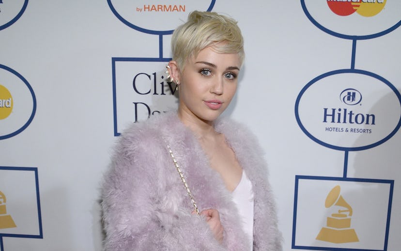 At a pre-Grammy party, Cyrus paired a pre-fall Calvin Klein wooly jacket over a Cher Horowitz-style white silk dress. She added Calvin Klein sandals and a Chanel perfume bottle purse--the kind often worn by Alexa Chung or Diane Kruger--that was filled with lipgloss and toys. (Duh.) While Cyrus' style has varied from crop tops to ball gowns, we like this cool girl iteration the best. And come sunny weather, we will most certainly be copping Cyrus' look with the items below because we can't stop obsessing over this outfit.