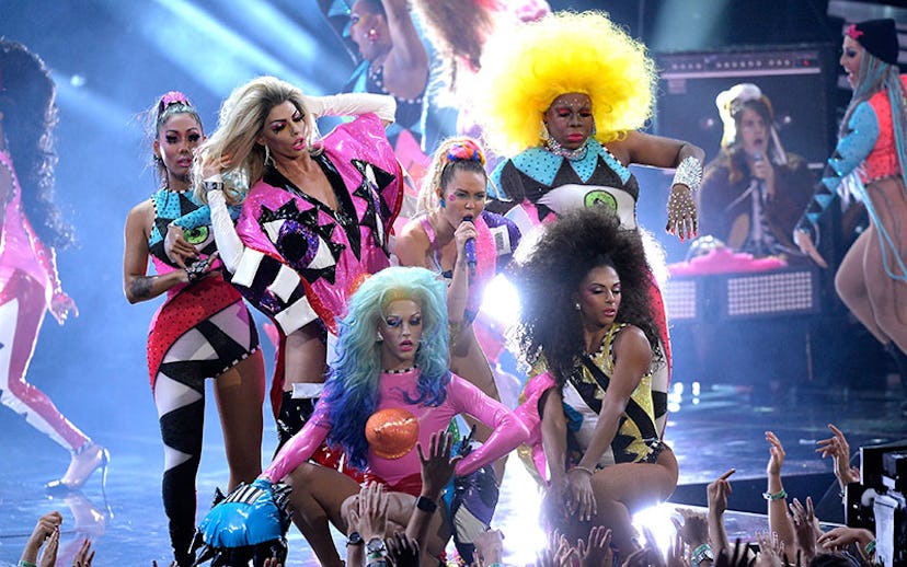 Brad, a pal of NYLON, gave us the scoop about designing for Miley's big night—plus her 31 "backup dancers"—all famous queens from former seasons of RuPaul's Drag Race. Having Miley call you for a major event is every designer's dream, but it's also especially gratifying to see Callahan get the shine he so deserves, due to his allegiance to the underground...and incredible talent, too.