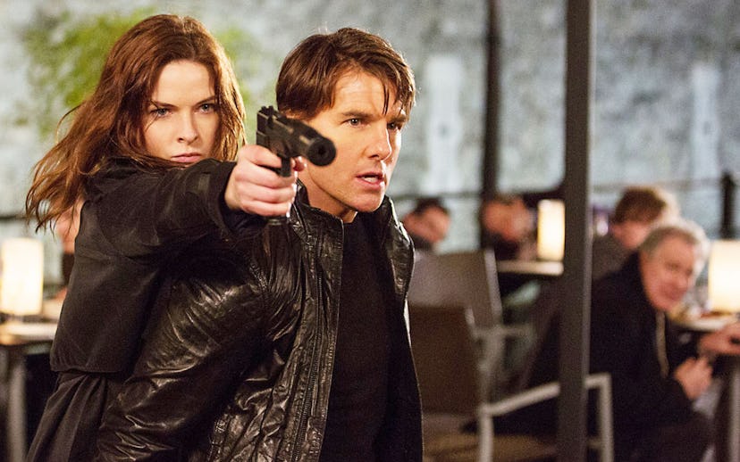 It helps that Rogue Nation pairs Cruise with a female lead who, if not his equal, is at least game for the challenge. Swedish actor Rebecca Ferguson is the silky, confident femme fatale foil this series has always lacked. Though she is the only woman in the film and still far too young for Cruise, her Isla is a fully realized badass—a highly physical killer and spy who, you’ll be happy to know, introduces herself by taking off her high heels. Neither Cruise nor Ethan Hunt has met a woman like her.