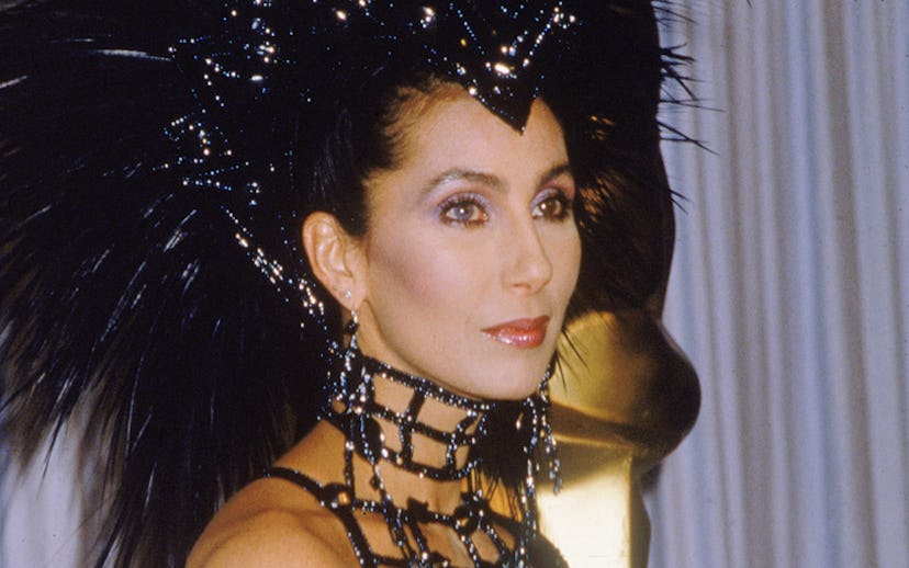 Is it a bird, is it a crane? Oh no, it's just Cher. There are exceptional beings and then there is the strange presence of Cher. What could be more anti-Oscars than wearing a Bob Mackie stage outfit (headdress and all)? Nothing, that's what.