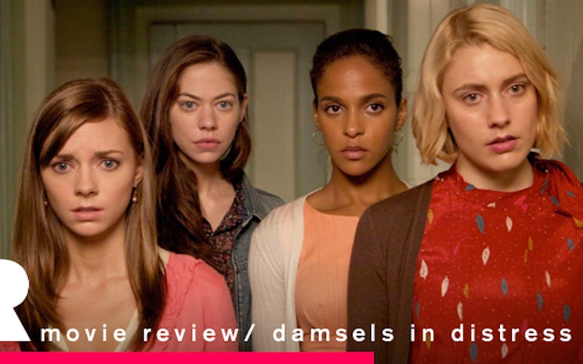On paper it might seem tough to relate to Damsels in Distress. We're not sure when it's set, the dialogue isn't at all how we talk in real life, and the plot is just out-there enough to make us wonder if we've missed something along the way. But this far-fetchedness is exactly what makes Whit Stillman's new comedy so great. The director is known for equally eccentric films like The Last Days of Disco and Metropolitan, but this time around he's taking his well-bred cast of characters back to college.