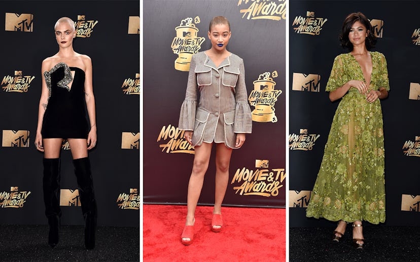 Aside from the new addition of categories, yesterday certainly broke down some major barriers. The awards ceremony took big steps toward LGBTQIA+ inclusivity with moments like the Moonlight stars winning the award for Best Kiss and Emma Watson accepting the first-ever genderless acting award. On top of that, the looks being served on the step-and-repeat were super on point.