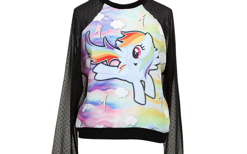 With the world on their side, it's no wonder that the My Little Pony brand has a lot planned for its 30th anniversary this month, including a collection of high fashion tops in collaboration with fashion/art collective Andrea Crews. The resulting line includes sheer sweatshirts and logo T-shirts with giant horses and rainbow designs on the front. There's also a set of My Little Pony patches for those of you looking to spice up your jean jacket.