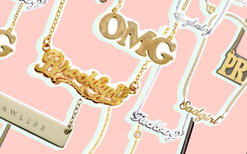 Ahead, 10 nameplate necklaces that make the old yearbook superlatives look blasé.