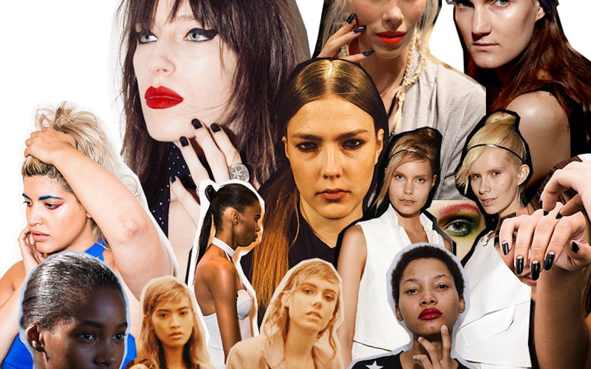 For New York City beauty editors, one of Fashion Week's greatest frustrations is the aggressive lack of makeup of recent seasons. "Just concealer where needed," the lead makeup artists would tell a semi-circle of editors backstage, insisting that the flawless, bare faces of the tall 19-year-olds around us was a trend, rather than the result of good genes and youth. It was a tough pill to swallow, especially for those of us who (A.) love makeup and/or (B.) don't feel comfortable without it on. This season, though, the no-makeup makeup thing took a backseat—and bold lipstick, dramatic eyes, and goth-inspired nails ruled the runways.