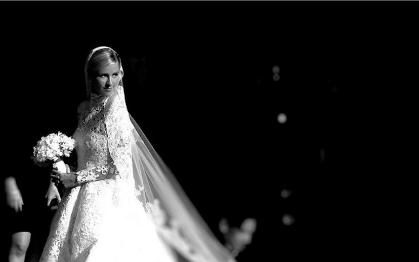 Of course, it wouldn’t be a proper wedding day without something going wonderfully, hilariously wrong. Most brides get that little bit of chaos—a sign of good luck—thanks to something like rain or a massive, tumbling cake fail. Nicky Hilton being a Hilton, however, had the huge veil of her $77K dress run over and caught in the wheel of a freaking, $200K Bentley. So on brand, Nicky. So on brand.