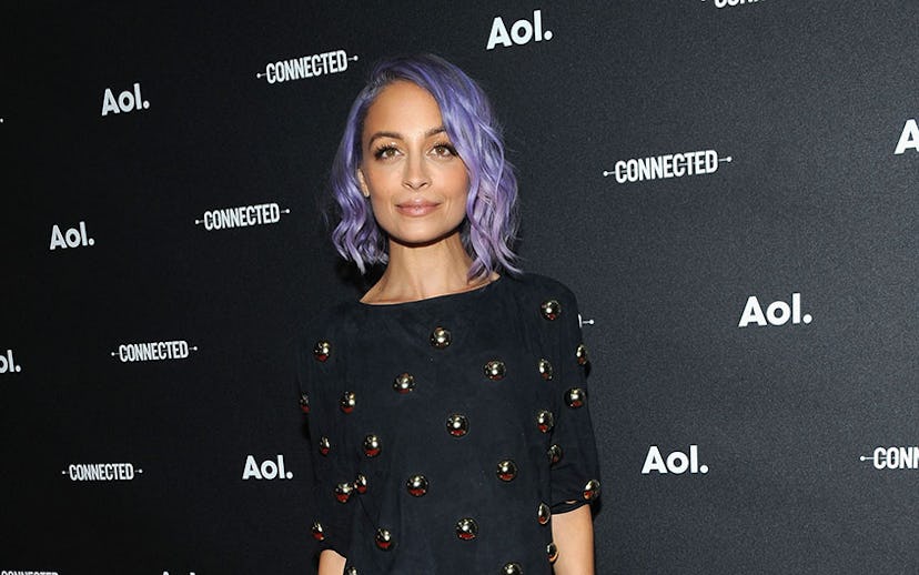 Let's just take a moment and discuss how awesome Nicole Richie looks. Sporting lavender tresses, Nicole Richie stepped out at the AOL NewFonts Event to discuss her hit show, #CandidlyNicole. Richie is known for her comedic chops, so it's a no brainer that her wardrobe would reflect her unfiltered humor. Her mid-thigh dress bares it all, featuring garter-like cut-outs and gold studded detailing.