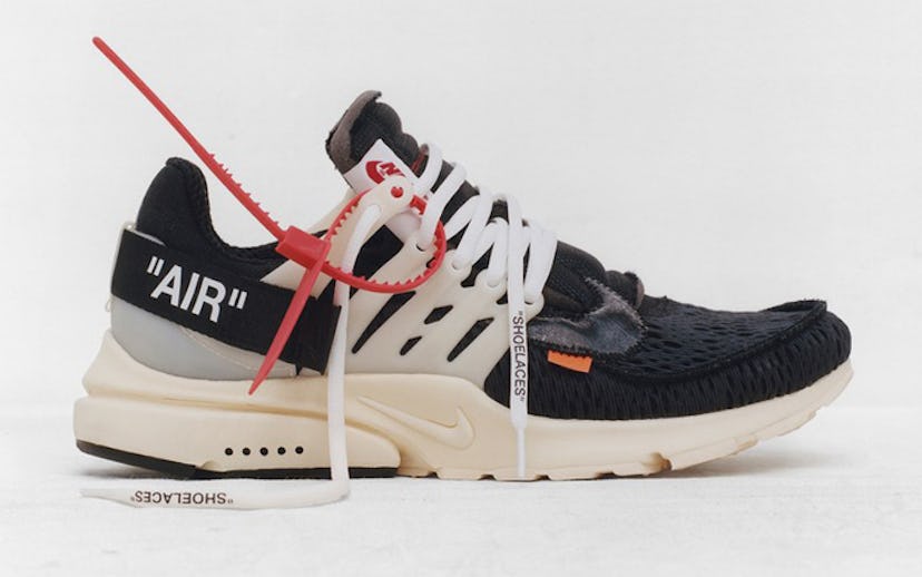 Virgil Abloh of Off-White is Nike's latest collaborator. He took 10 of Nike's most recognizable models—like Chuck Taylors, Vapormaxs, and Air Jordan 1s—and reconstructed them with a variety of "Ghosting" and "Revealing" embellishments. That means, the sneakers, respectively, feature translucent panels to highlight the make of the shoe and words like "shoelaces" and "foam" printed on the shoelaces and soles, revealing the show's materiality. The entire collection, which is divided into "Ghosting" and "Revealing" categories, is called The Ten.